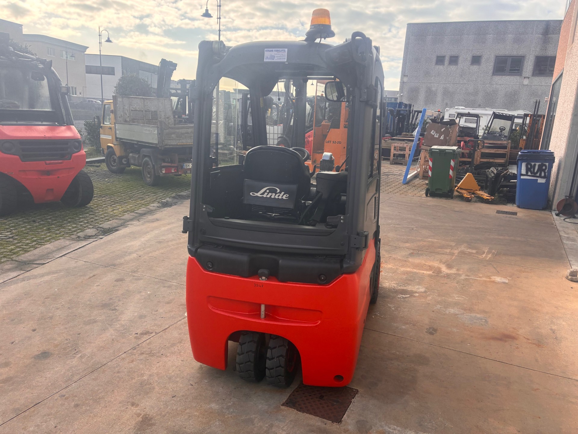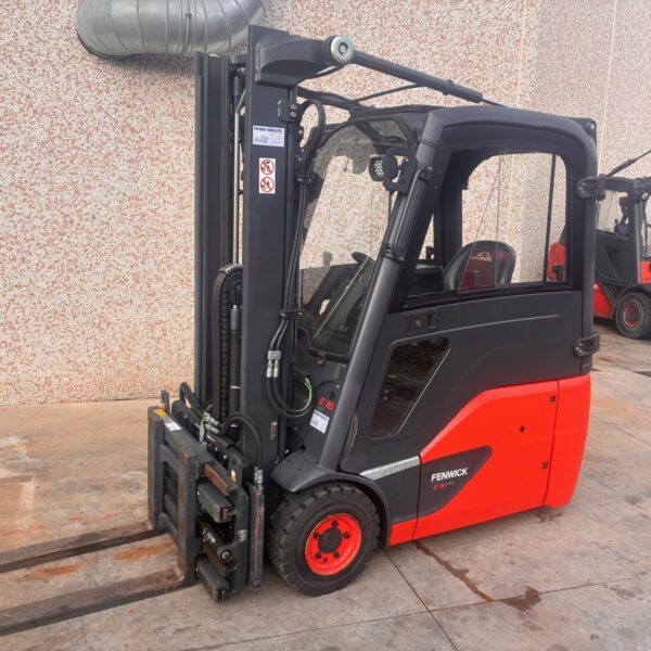CARRELLO ELEVATORE LINDE 16 Q.LI ELETTRICO – ANNO 2019 – ELEVAZIONE 3140 MM DUPLEX – DISTRIBUTORE 4 VIE – RUOTE SUPERELASTICHE – TRASMISSIONE ELETTRONICA – CABINA COMPLETA, ALZATA LIBERA, TRASLATORE CON POSIZIONATORE A GRANDE APERTURA – ORE 1245
