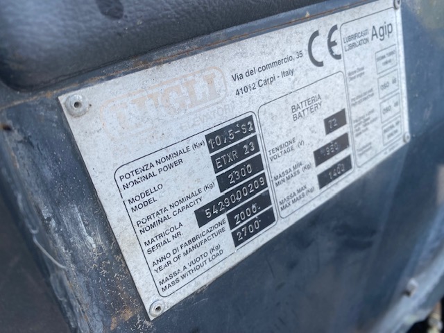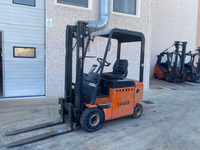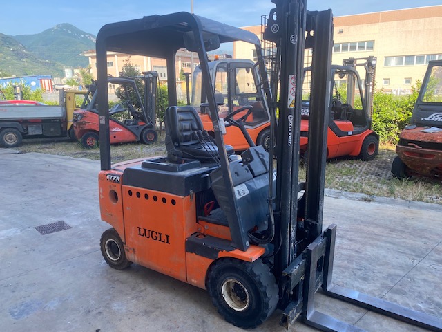 CARRELLO ELEVATORE ELETTRICO LUGLI 23 Q.LI – ANNO 2000 – ELEVAZIONE 3350 MM STANDARD – DISTRIBUZIONE 4 VIE – RUOTE SUPERELASTICHE – TRASLATORE, VISIBILITA’ LIBERA